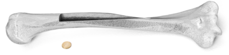 a cross-cut of the print. Right: the full 3D printed bone with the coin showed for scale.