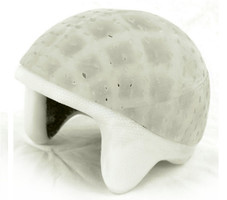 Left: a voxel rendering of the helmet, excluding the transparent outer shell.